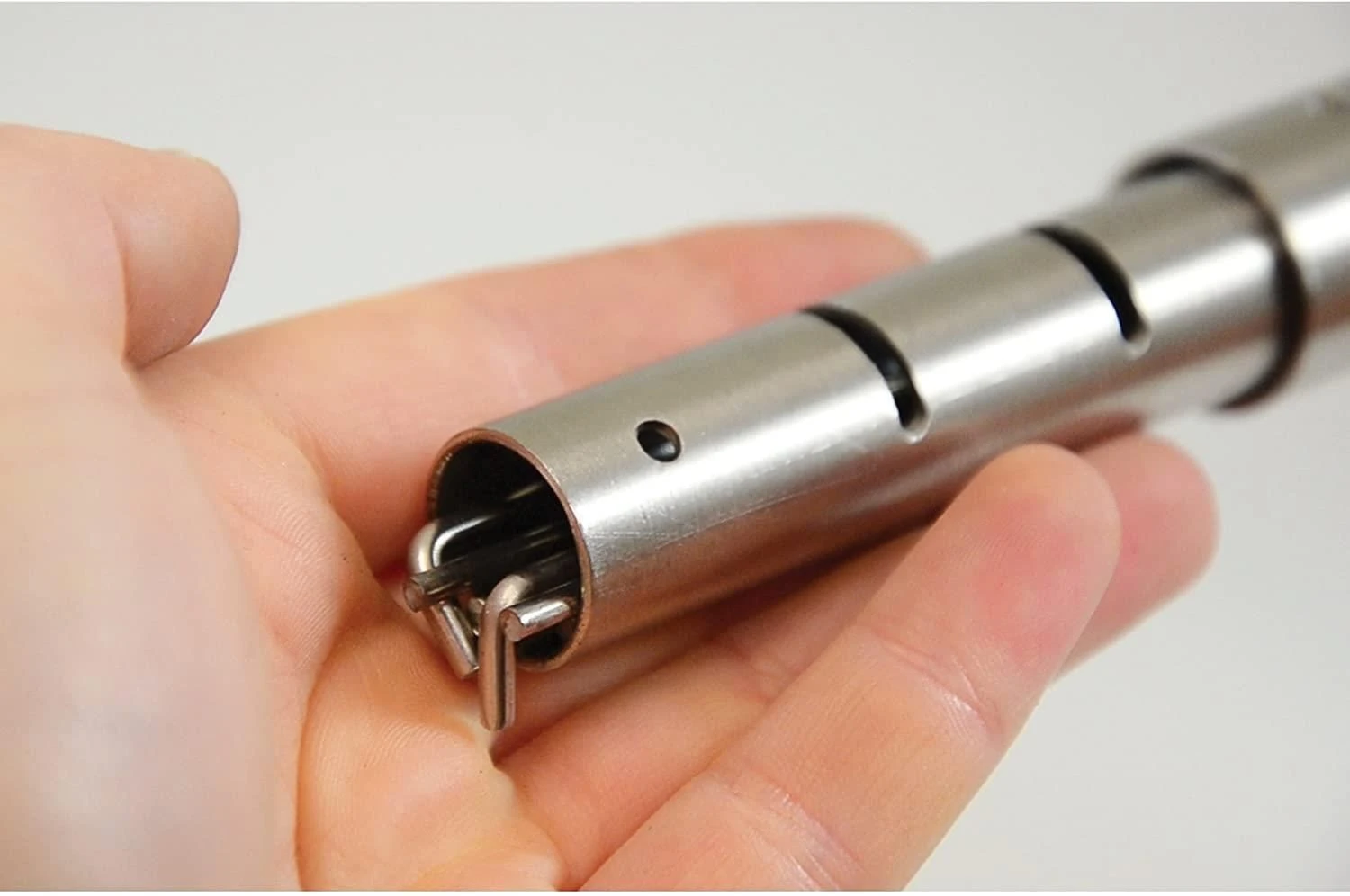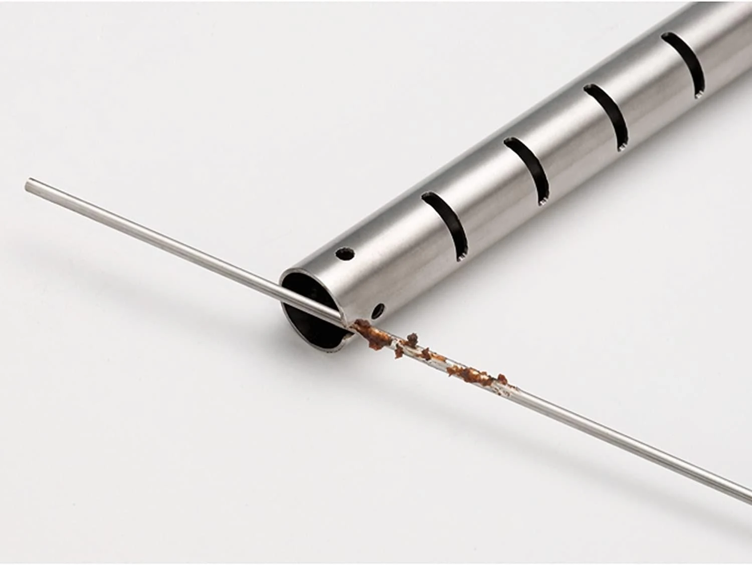 - Includes 1 thick tube with a stopper, 1 thin tube with a cleaning groove, 2 outer grill rods with hooks and threads, 10 grill rods, 4 grill feet.